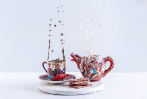 Prkošenje gravitaciji predstavlja Ivana Krajačić, tekućina koja se diže iz posuda i kaplje u vis snimljena je na tečaju Upravljanje svjetlom i studijska rasvjeta.