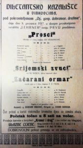 Prvi očuvani i arhivirani plakati i ulaznice su iz predstave Prosci Ise Velikanovića i Začarani ormar Ferde Ž. Milera Diletanskoga kazališta u Vinkovcima. No osim što ta okrugla obljetnica rada vinkovačkog kazališta raduje, toliko je i obvezala djelatnike kazališta da i dan danas rade marljivo, ali i predstave javnosti bogat kazališni program.